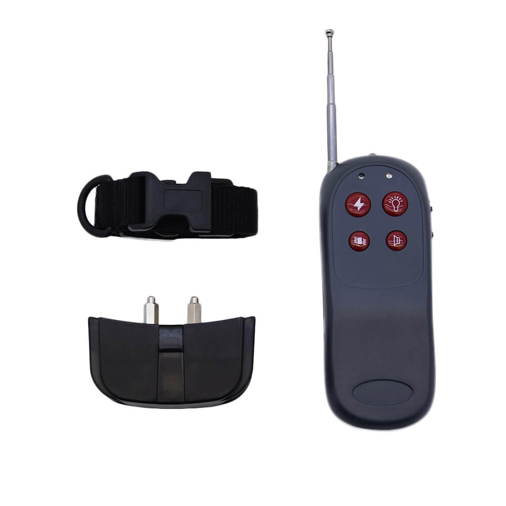 Электронный ошейник P-998C используется для дрессировки собак. Длина ремешка регулируется до 55 сантиметров, ошейник подойдет для средних и крупных пород. Ресивер работает в трех режимах: «звук», «вибрация», «импульс». Для активации каждого режима на пульте предусмотрена отдельная кнопка, на которой есть соответствующая иконка-подсказка. Пульт и ошейник корректно работают на расстоянии до 300 метров. Ресивер питается от двух батареек формата ААА, пульт – от батарейки типа «Крона».